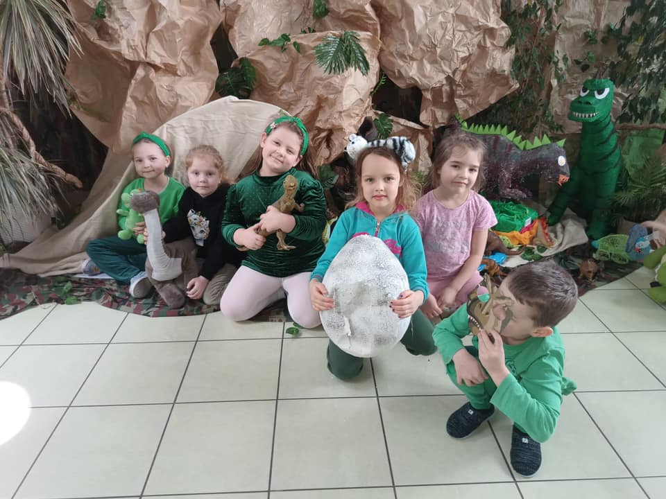 Dnia 26 lutego 2025r. całe nasze przedszkole przeniosło się w prehistoryczny świat! . Sale i hol przedszkolny zamieniły się w prawdziwą krainę dinozaurów – pełną kolorowych dekoracji, przestrzennych dinozaurów wykonanych wspólnie przez dzieci i rodziców. oraz mnóstwa kreatywnej zabawy! .