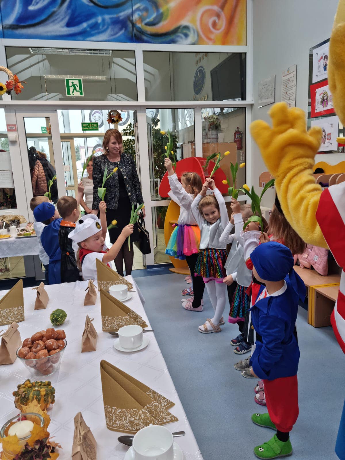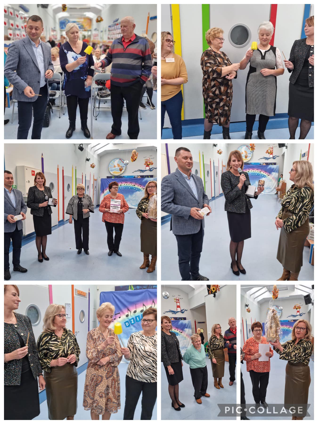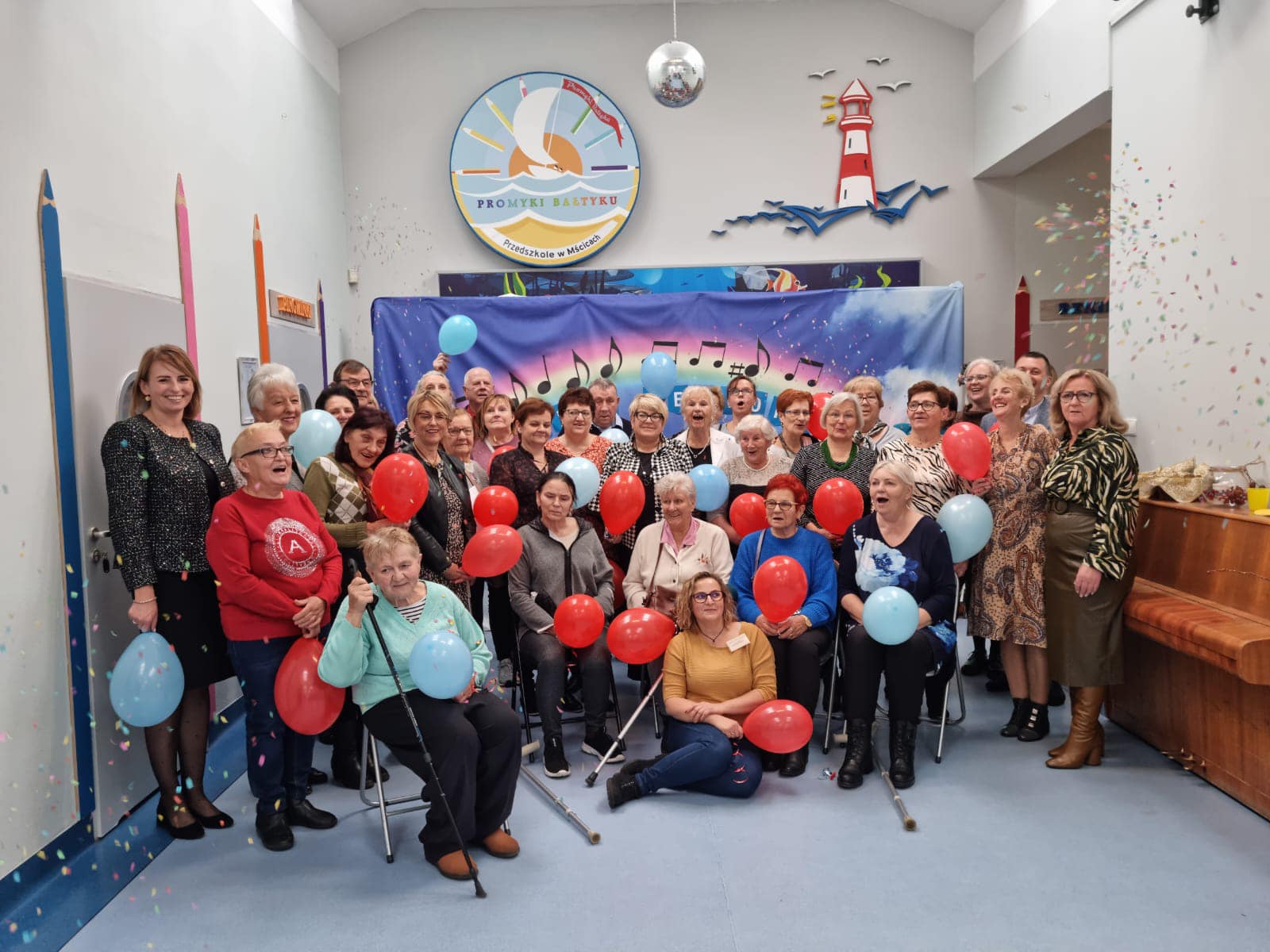 Dnia 15 listopada 2023r. w progi naszego przedszkola zawitali seniorzy z Domu Seniora z Tymienia i ze Mścic. Dzieci powitały gości szpalerem z kwiatów. Były tańce, śpiewy i zabawy. Swoją obecnością zaszczyciła wszystkich pani wójt Sylwia Halama, Przewodniczący Rady Gminy - pan Andrzej ożykowski oraz Kierownik Gminnego Ośrodka Pomocy Społecznej - pan Adam Czycz. Na pianinie pięknie zagrała nam pani Violetta Milka, babcia naszych dwóch przedszkolaków. Wszyscy nasi goście otrzymali upominki-niespodzianki wykonane przez panie nauczycielki z naszego przedszkola. Dziękujemy uczestnikom Klubu Seniora w Mścicach oraz uczestnikom Domu Seniora w Tymieniu za odwiedziny i super zabawę.