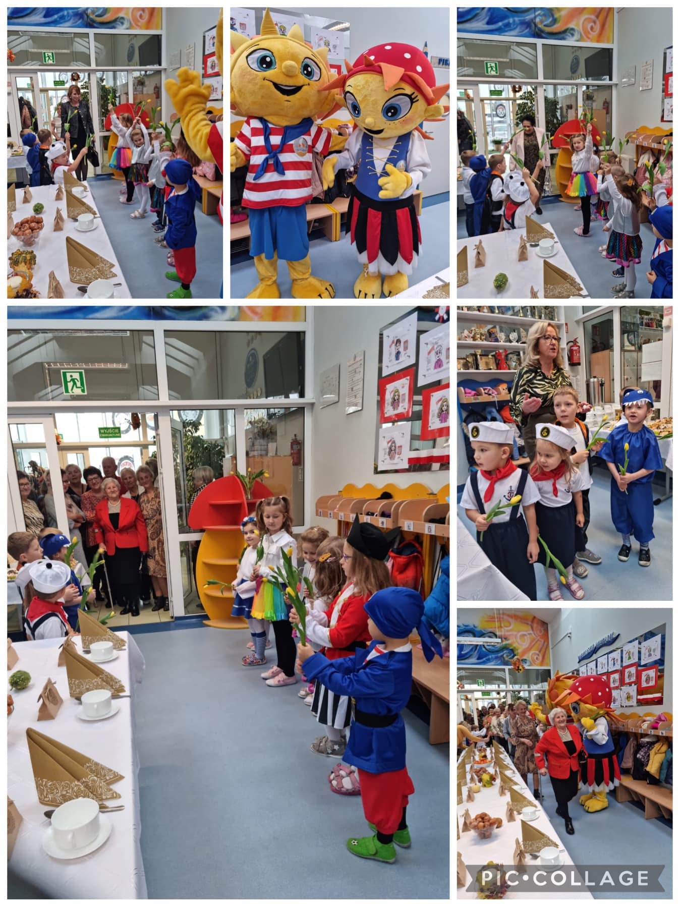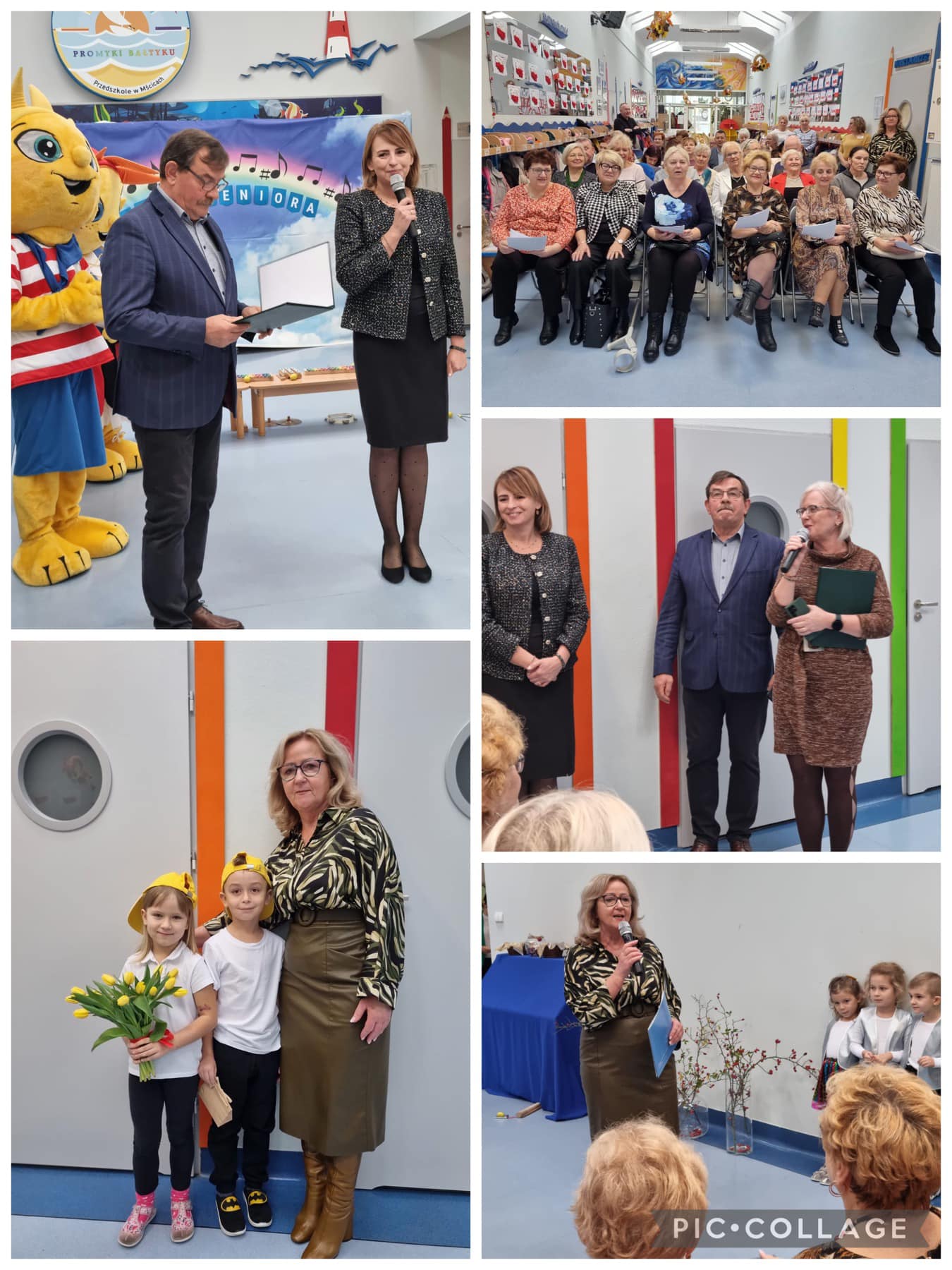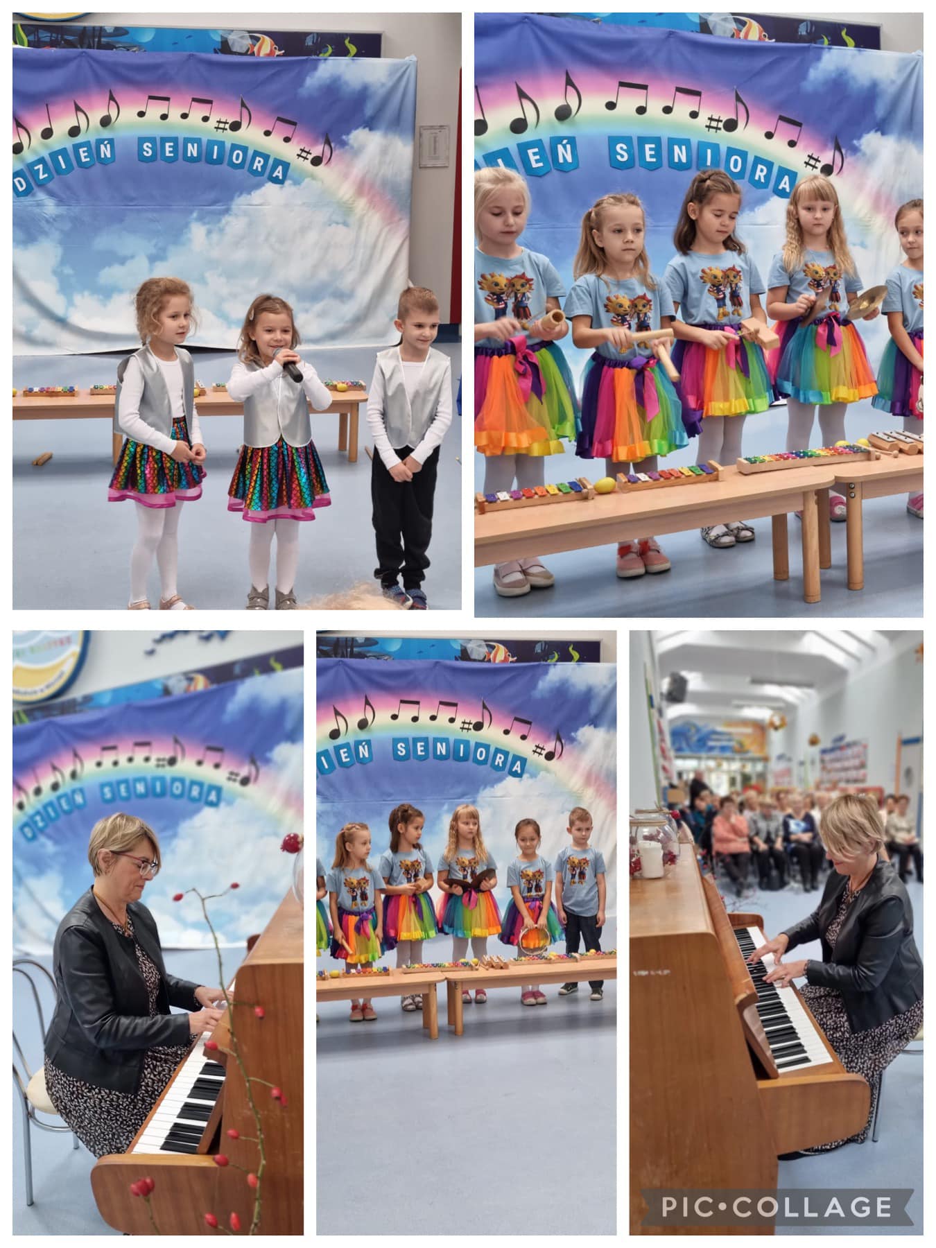 Dnia 15 listopada 2023r. w progi naszego przedszkola zawitali seniorzy z Domu Seniora z Tymienia i ze Mścic. Dzieci powitały gości szpalerem z kwiatów. Były tańce, śpiewy i zabawy. Swoją obecnością zaszczyciła wszystkich pani wójt Sylwia Halama, Przewodniczący Rady Gminy - pan Andrzej ożykowski oraz Kierownik Gminnego Ośrodka Pomocy Społecznej - pan Adam Czycz. Na pianinie pięknie zagrała nam pani Violetta Milka, babcia naszych dwóch przedszkolaków. Wszyscy nasi goście otrzymali upominki-niespodzianki wykonane przez panie nauczycielki z naszego przedszkola. Dziękujemy uczestnikom Klubu Seniora w Mścicach oraz uczestnikom Domu Seniora w Tymieniu za odwiedziny i super zabawę.
