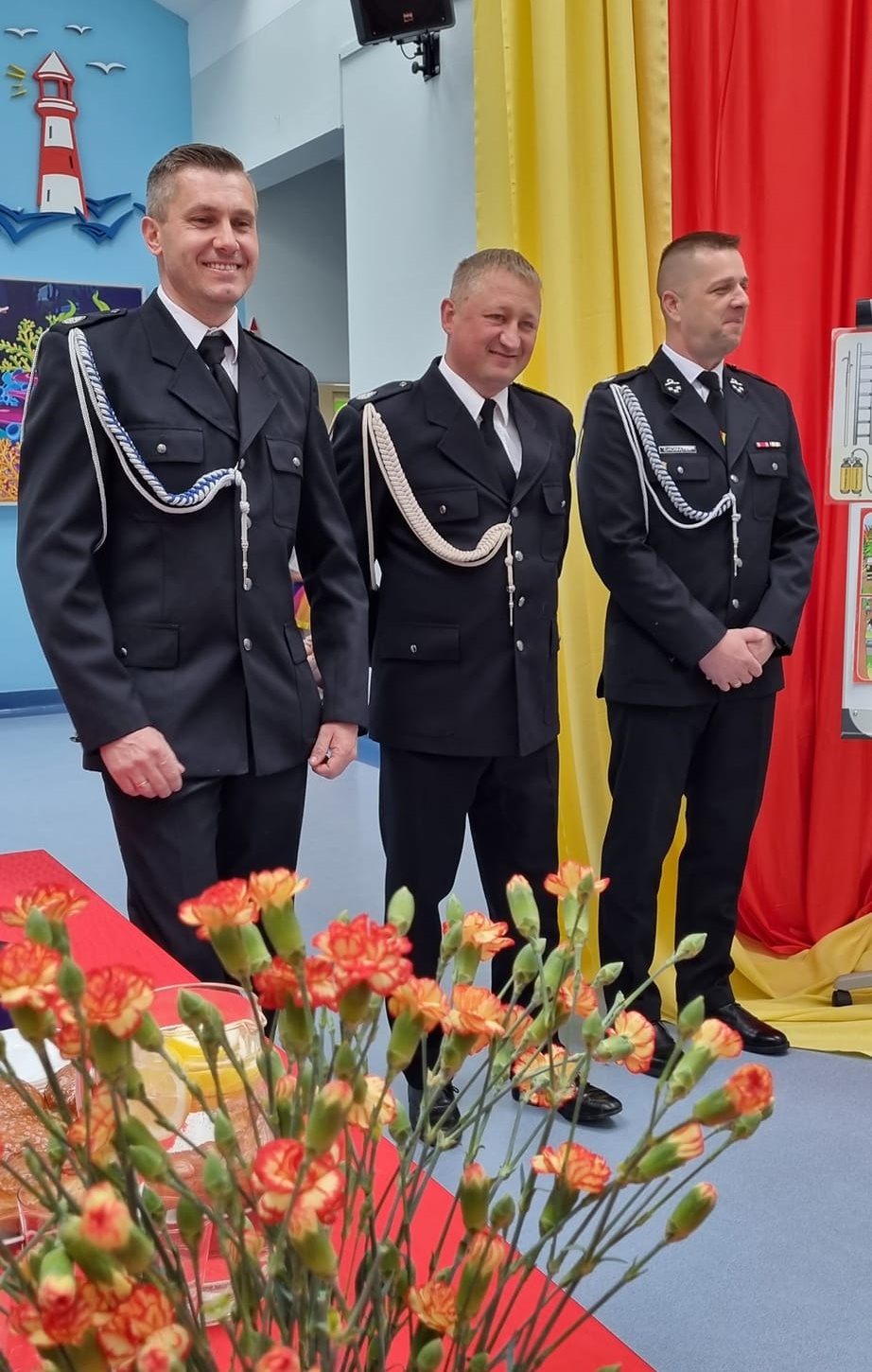 Życzymy Wam Panowie bezpiecznej służby,zawsze szczęśliwych powrotów z akcji,a także zdrowia szczęścia, pomyślności. Niech moc świętego Floriana aędzie co dzień z Wami już od samego rana. Niech ogień szybko z Waszą pomocą wygasa, a na Wasze męstwo i urodę będzie każda panna łasa! Pracujecie zawsze bezpiecznie i z głową, Bo służba Wasza jest pierwszorzędową. Wszystkiego najlepszego w dniu Waszego święta.