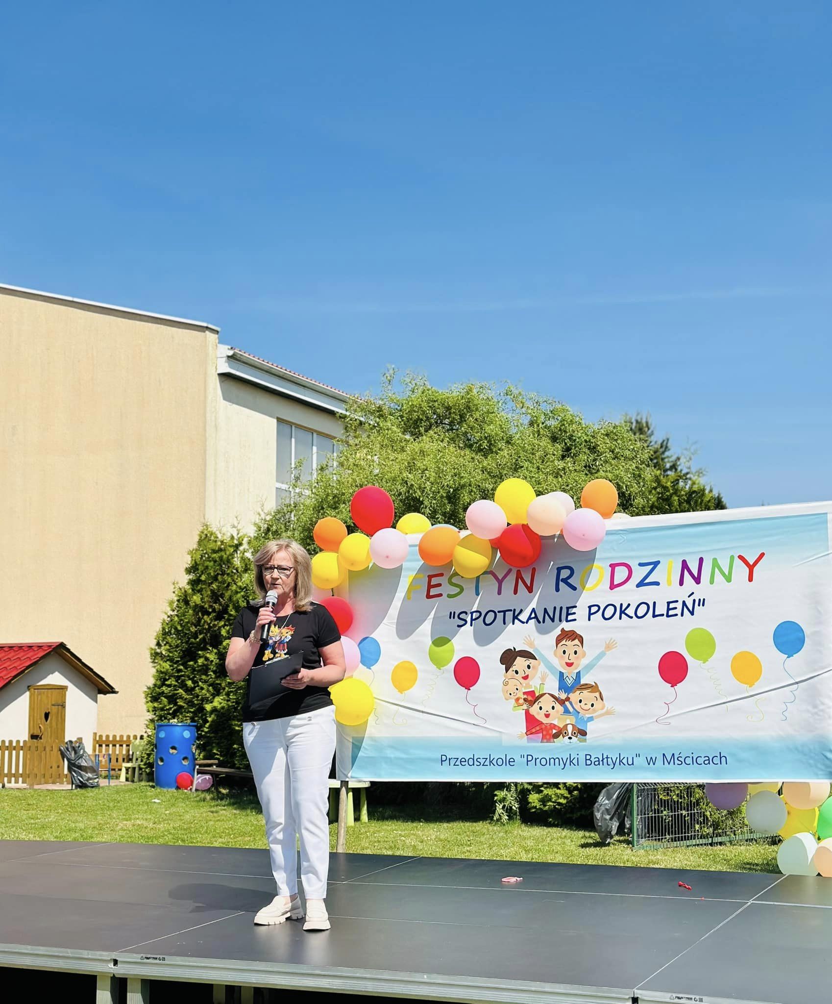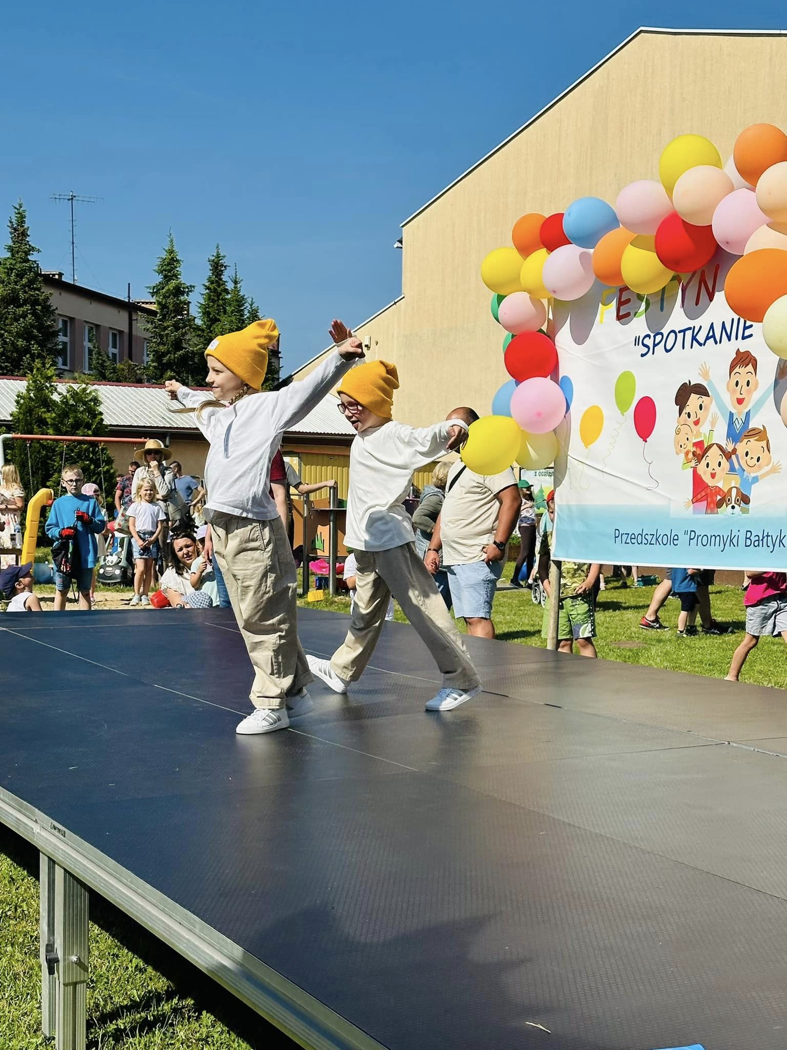 Dnia 24 maja 2024 r. w Przedszkolu „Promyki Bałtyku” odbył się coroczny Festyn Rodzinny „Spotkanie pokoleń”. Spotkanie zintegrowało całą społeczność przedszkolną i lokalną, która licznie przybyła i chętnie brała udział w przygotowanych animacjach i zabawach sportowych. Wielkie emocje wzbudziły występy artystyczne przedszkolaków i żłobkowiczów, które w barwnych strojach dały popis swoich umiejętności. Dodatkową atrakcją była wizyta klaunów „Kulki”, malowanie twarzy, warkoczyki, popcorn, wata cukrowa, lody, kącik plastyczny, szaleństwa wielkich baniek mydlanych, oglądanie super motocykli oraz możliwość wcielenia się w rolę strażaka i zwiedzenie nowoczesnego, olbrzymiego traktora.