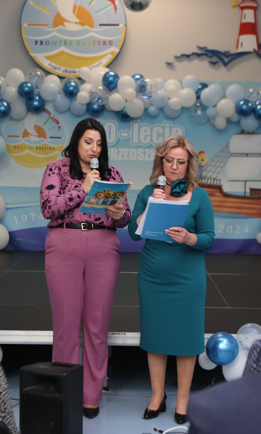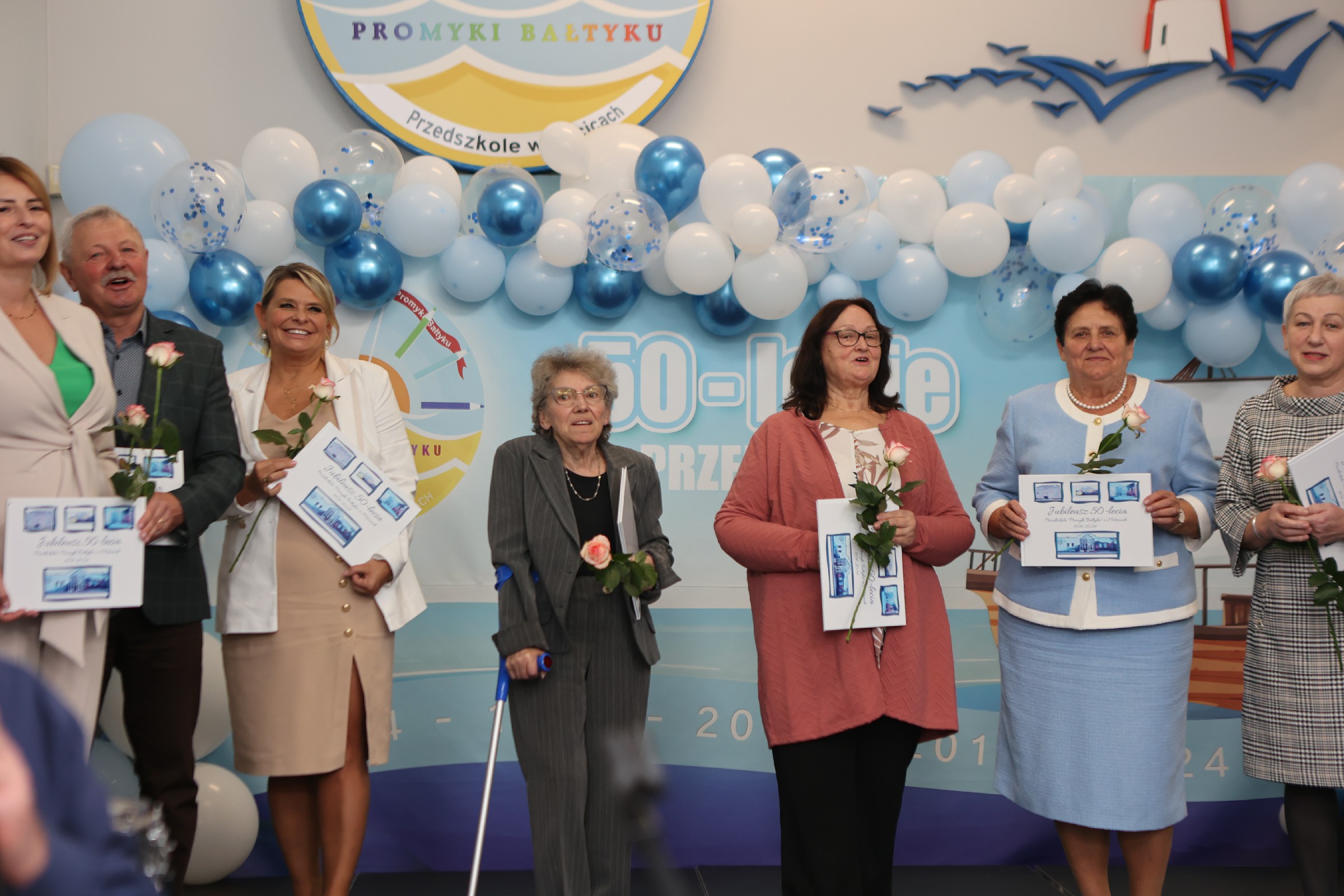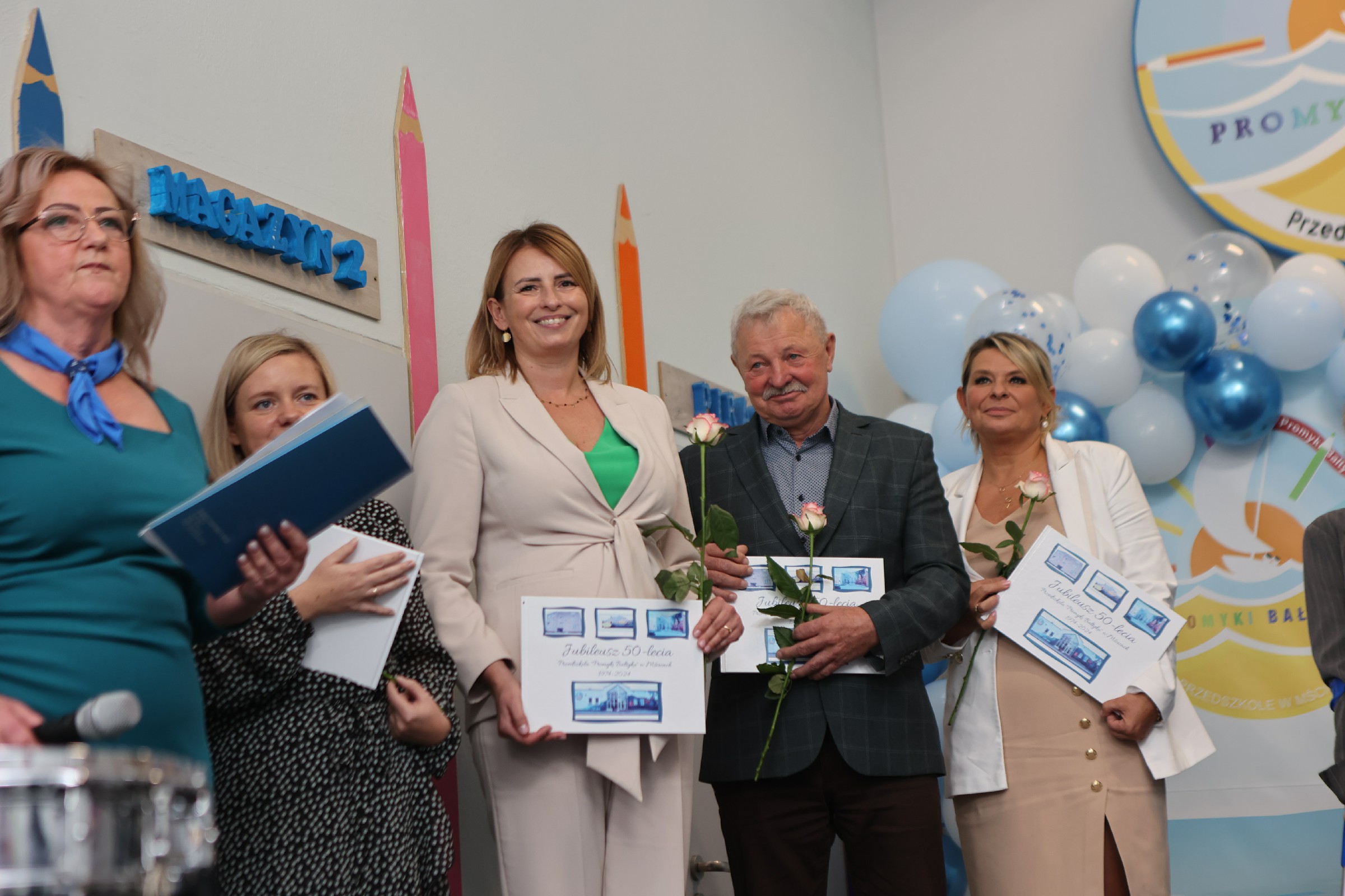 W sobotę 19 października 2024r. obchodziliśmy złoty Jubileusz 50-lecia Przedszkola „Promyki Bałtyku” w Mścicach. Z tej niezwykłej okazji w przedszkolu pojawili się znakomici goście: Pan Agnieszka Ławrynowicz- Wicestarosta Koszaliński, Pani Sylwia Halama – Wójt Gminy Będzino, Pani Anna Pietkowska – Wicewójt, Pani Dorota Kokłowska – Sekretarz Gminy, Pan Andrzej Nożykowski – Przewodniczący Rady Gminy, Pani Anna Grabiec-Karwat – starszy wizytator Kuratorium Oświaty, Radni Gminy Będzino, Przyjaciele Przedszkola, „byli” i obecni pracownicy przedszkola. Cała uroczystość obfitowała w przepiękne występy artystyczne przedszkolaków i absolwentów, oraz obecnej kadry przedszkola, która zaprezentowała nowy hymn przedszkola. Był to czas wielu wzruszeń, wspomnień i pięknych spotkań po latach.