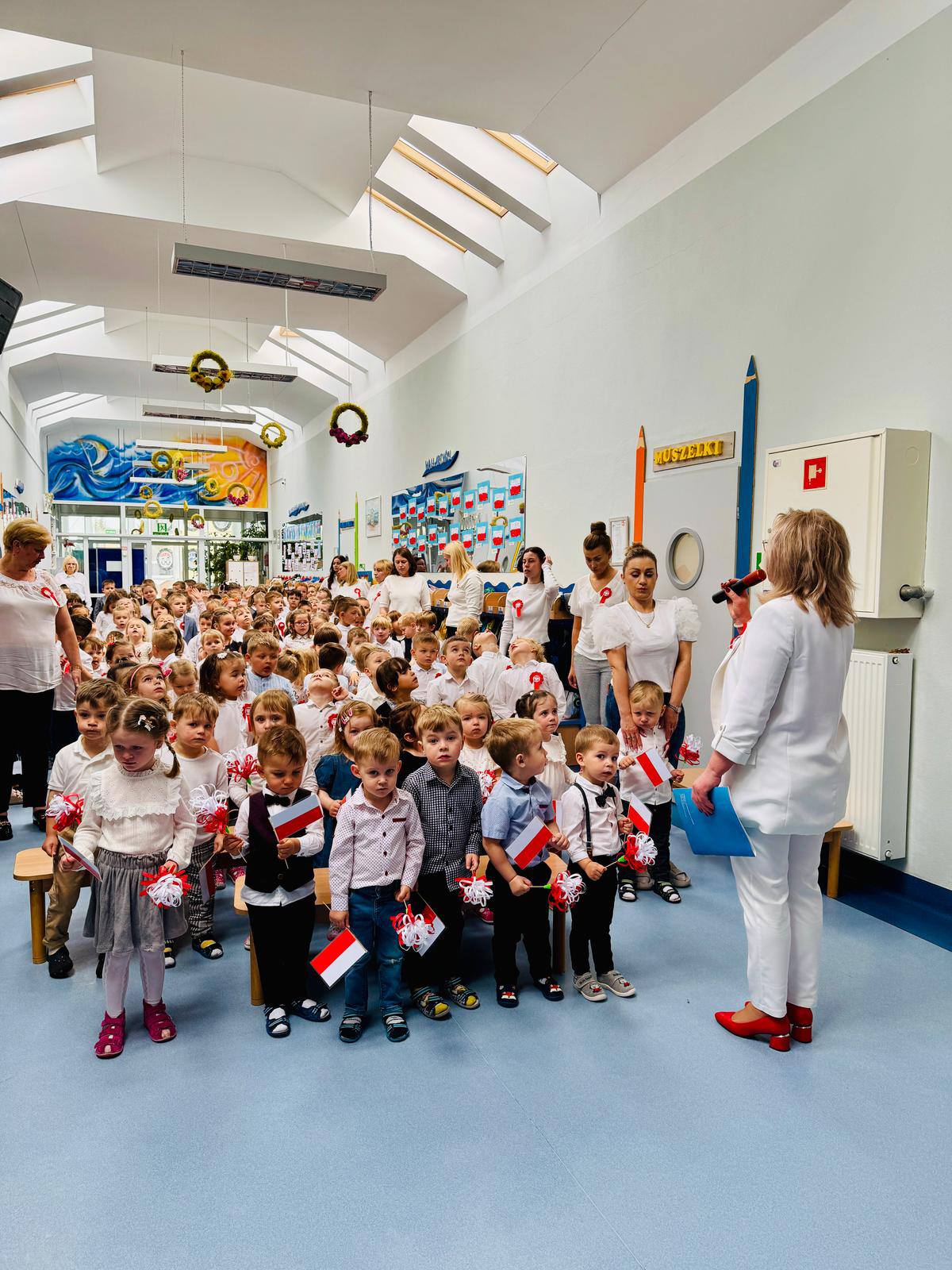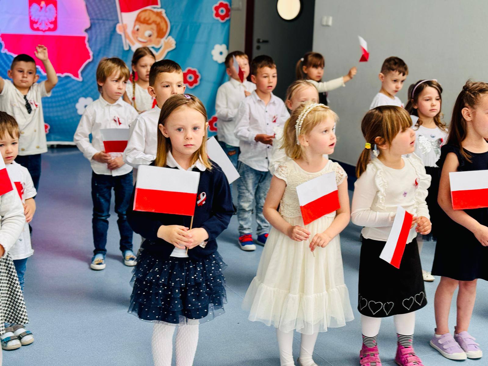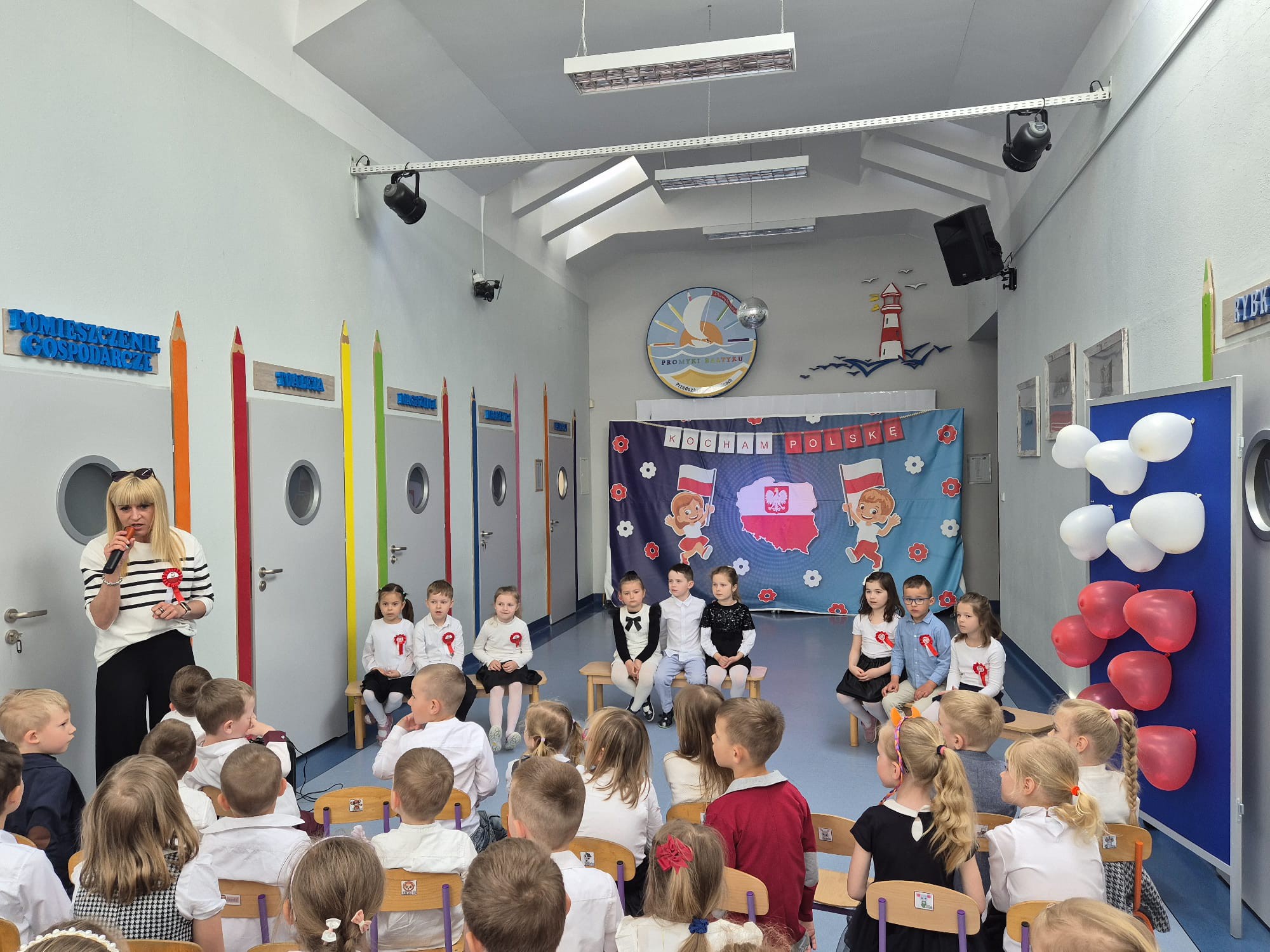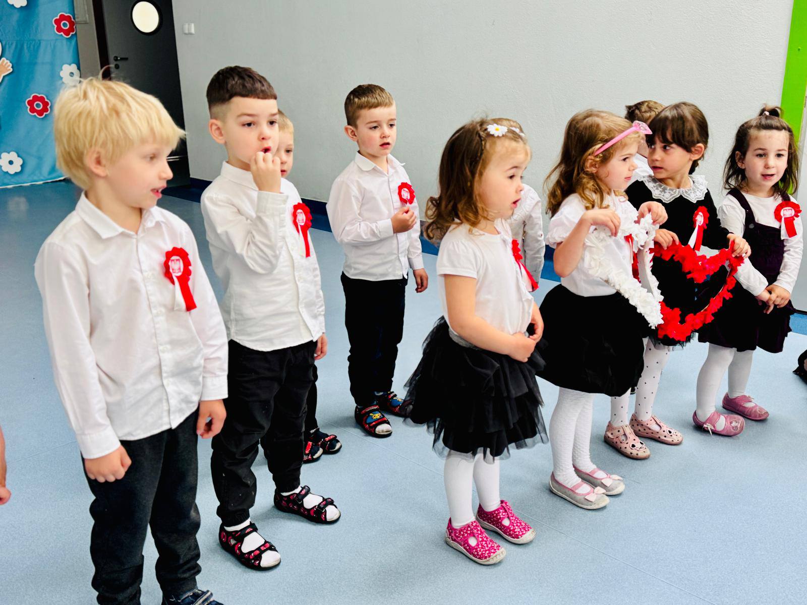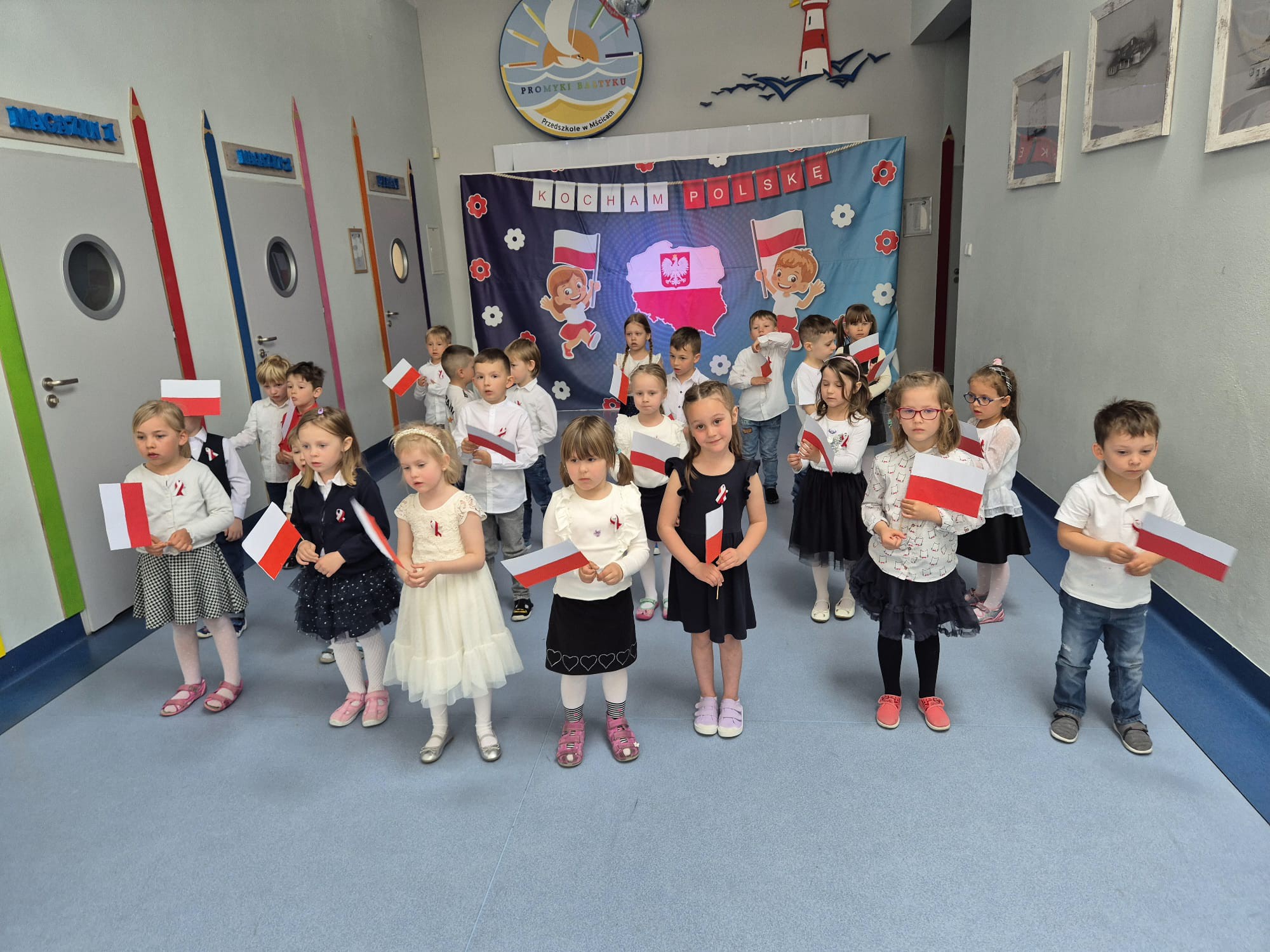 Z okazji zbliżających się świąt majowych dzieci wzięły udział w wyjątkowym wydarzeniu – uroczysty apel rozpoczął poczet flagowy, a każda grupa zaprezentowała piękną piosenkę lub wiersz o tematyce patriotycznej.