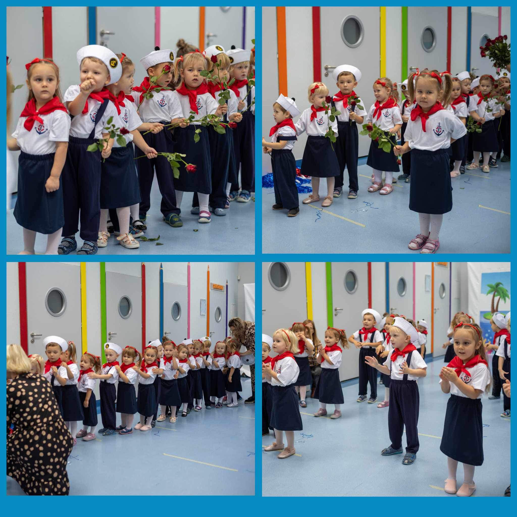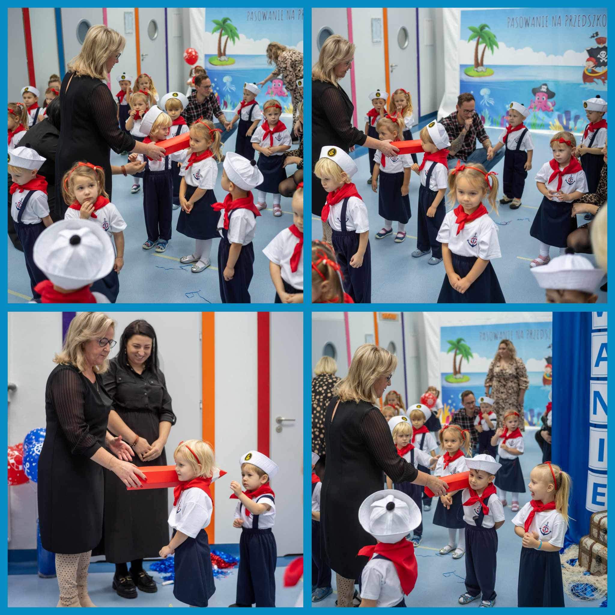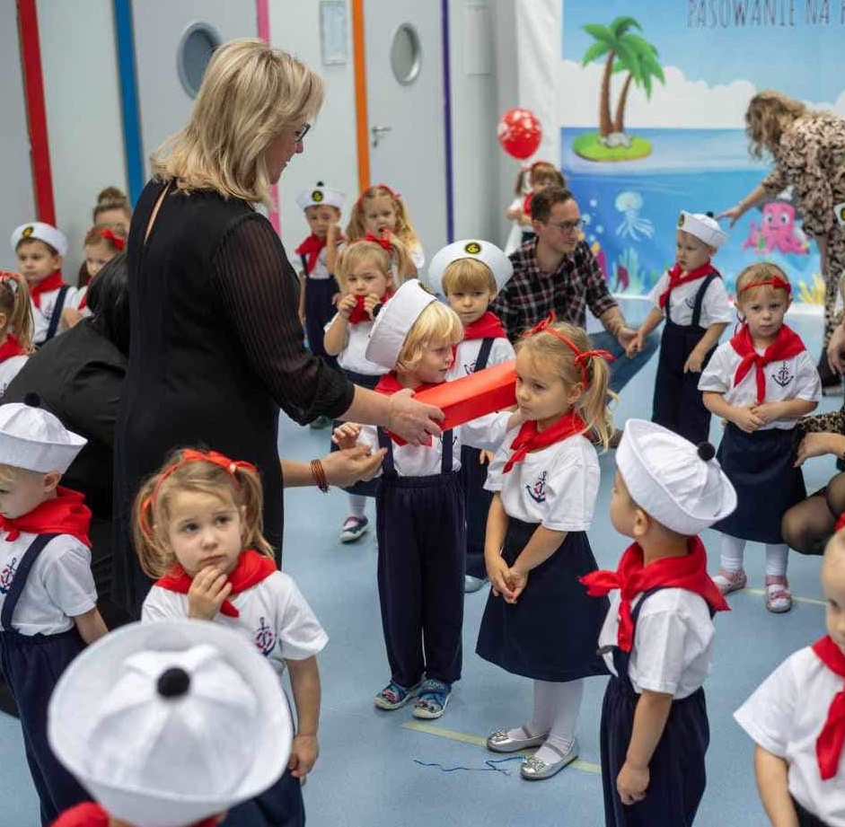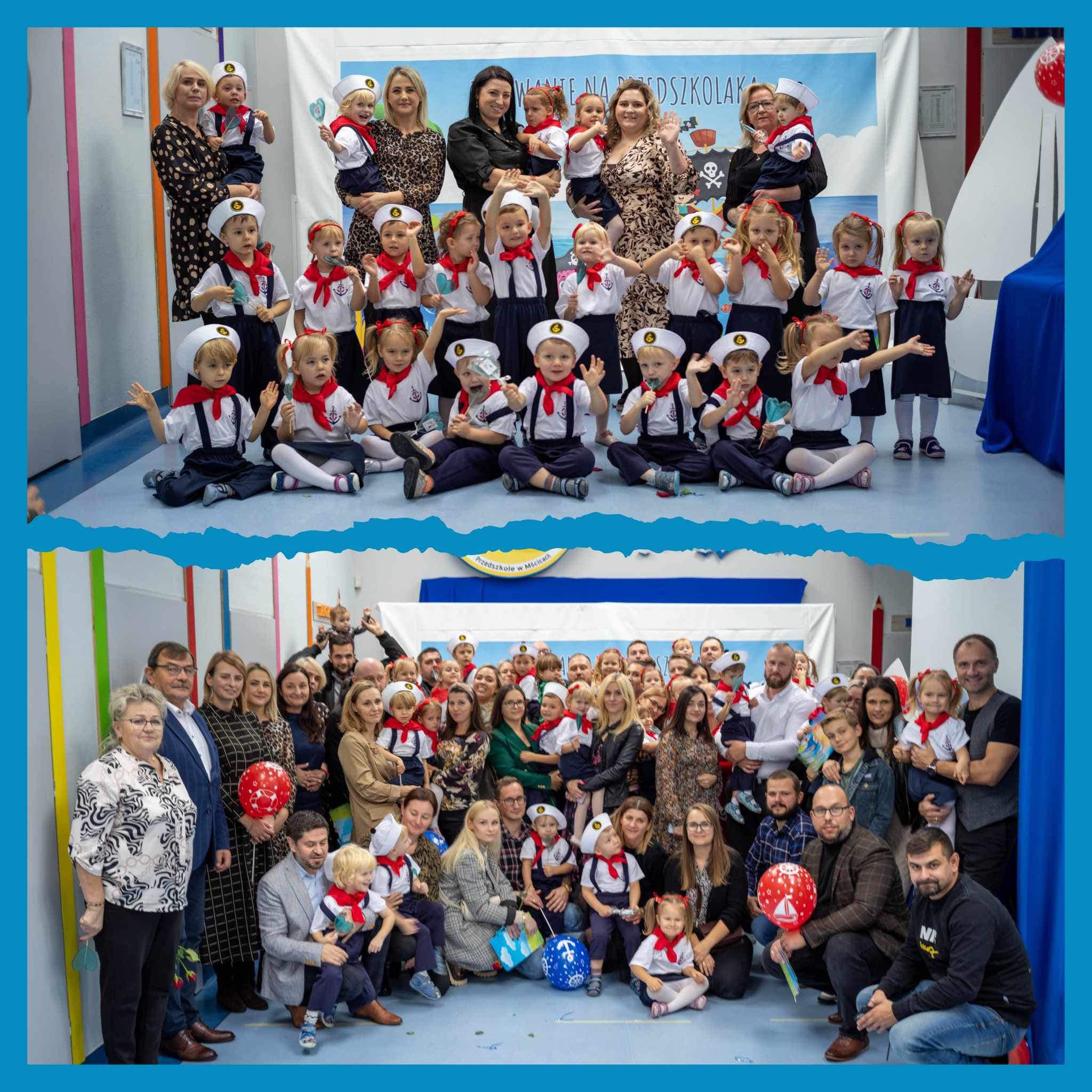 Dnia 26 października 2023r. w naszym przedszkolu odbyła się uroczystość Pasowania na Przedszkolaka dzieci 3-ltnich z grupy "Marynarze". Na tak ważnym wydarzeniu nie mogło zabraknąć najważniejszych osób dla naszych trzylatków, czyli rodziców i przedstawicieli gminy w osobie Pani Wójt Sylwii Halamy oraz Pana Andrzeja Nożykowskiego, Przewodniczacego Rady Gminy. Dzieci przygotowane przez swoje panie, zaprezentowały krótki popis swoich umiejętności artystycznych. Wszyscy byli pod ogromnym wrażeniem występów, dlatego Pani dyrektor z wielką przyjemnością dokonała pasowania wszystkich dzieci, które od tej chwili stały się prawowitymi PRZEDSZKOLAKAMI.