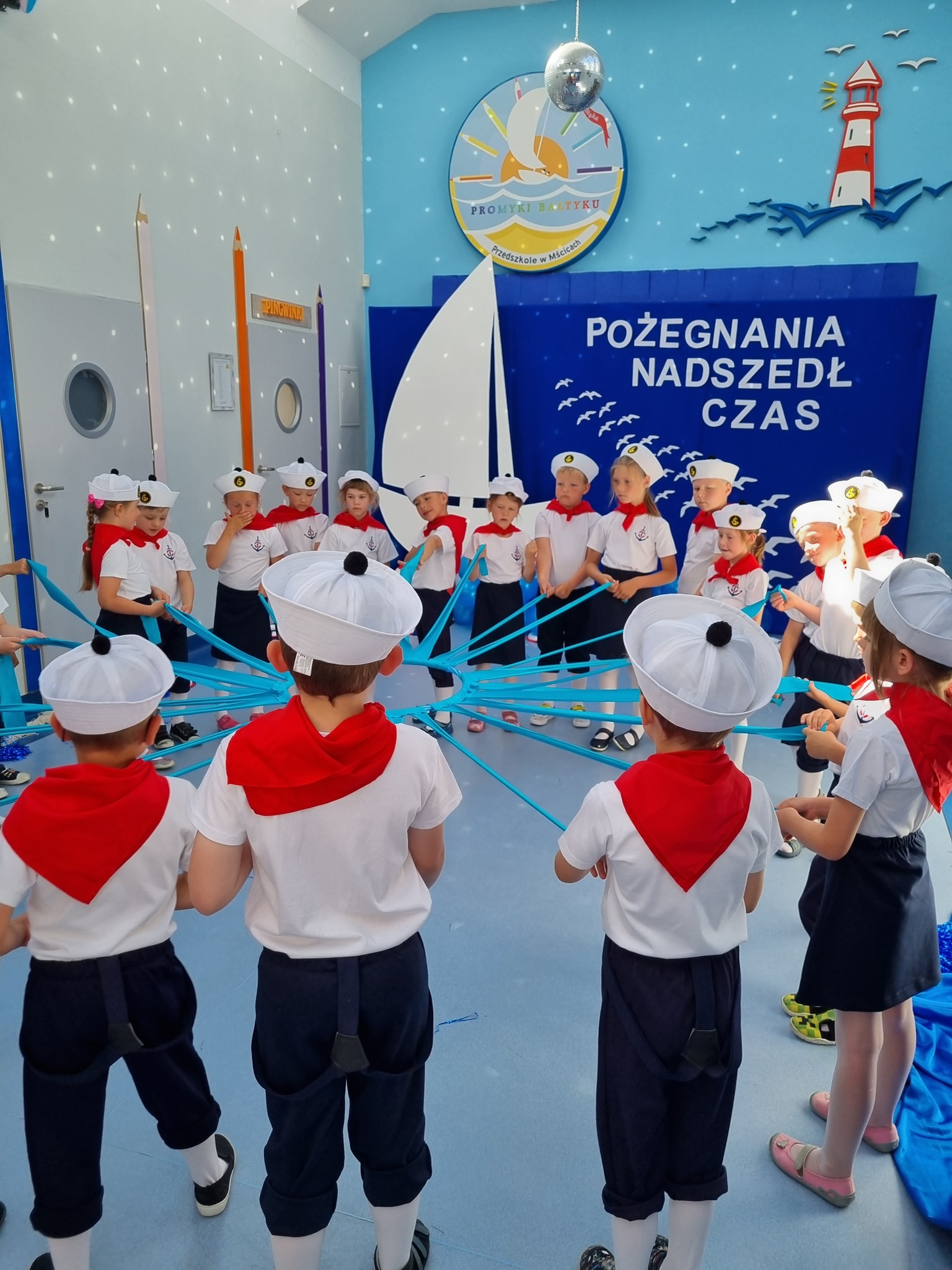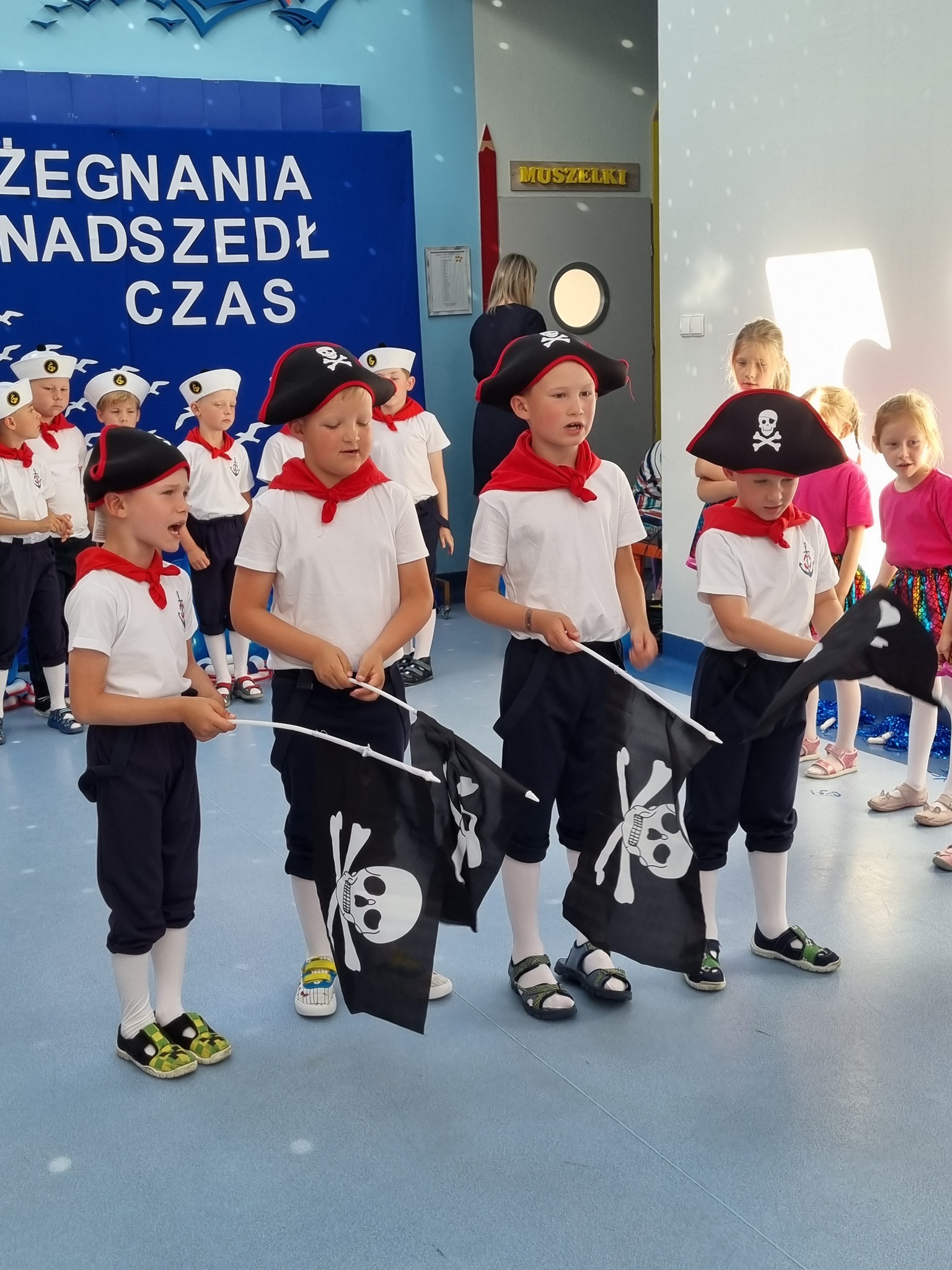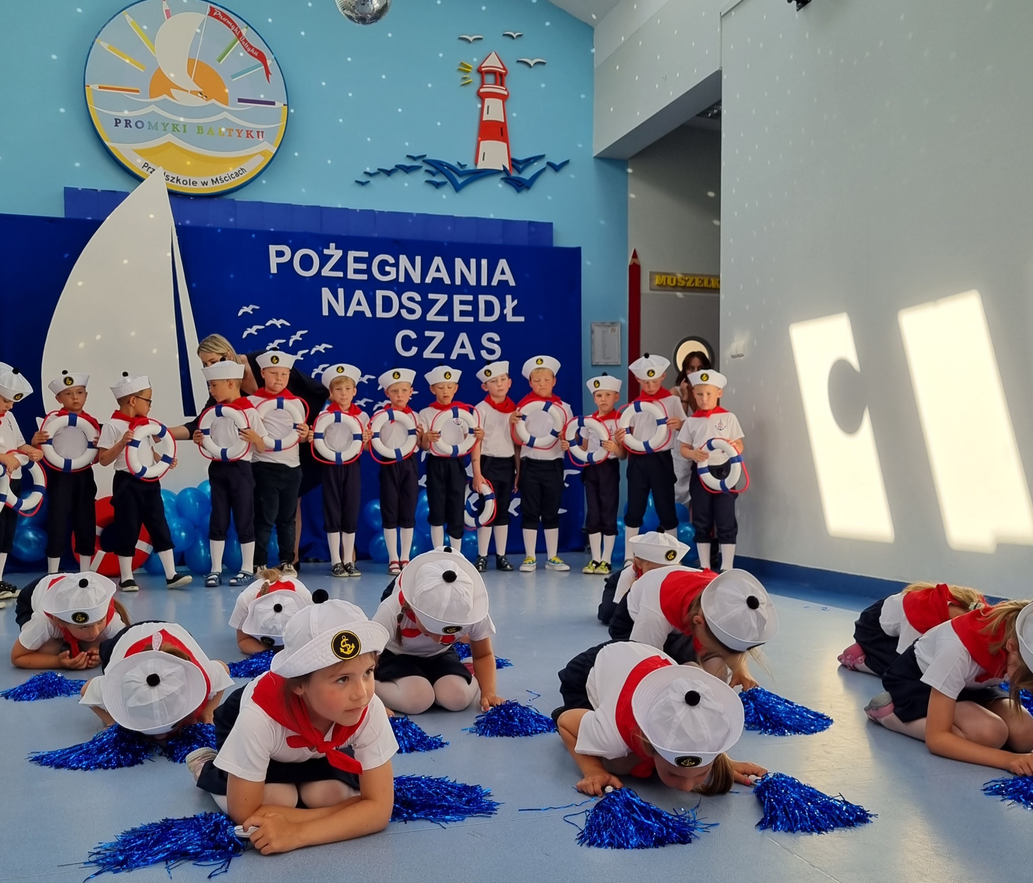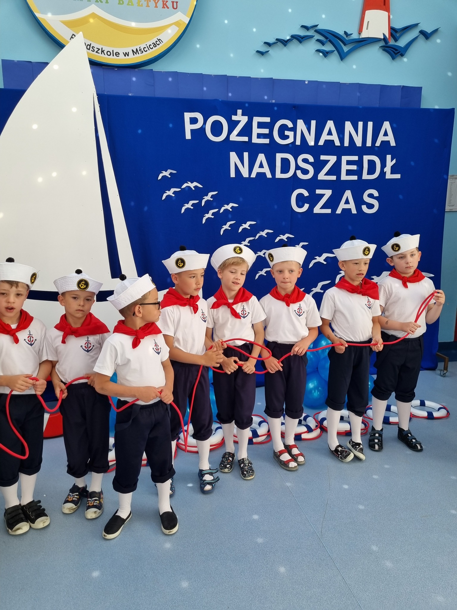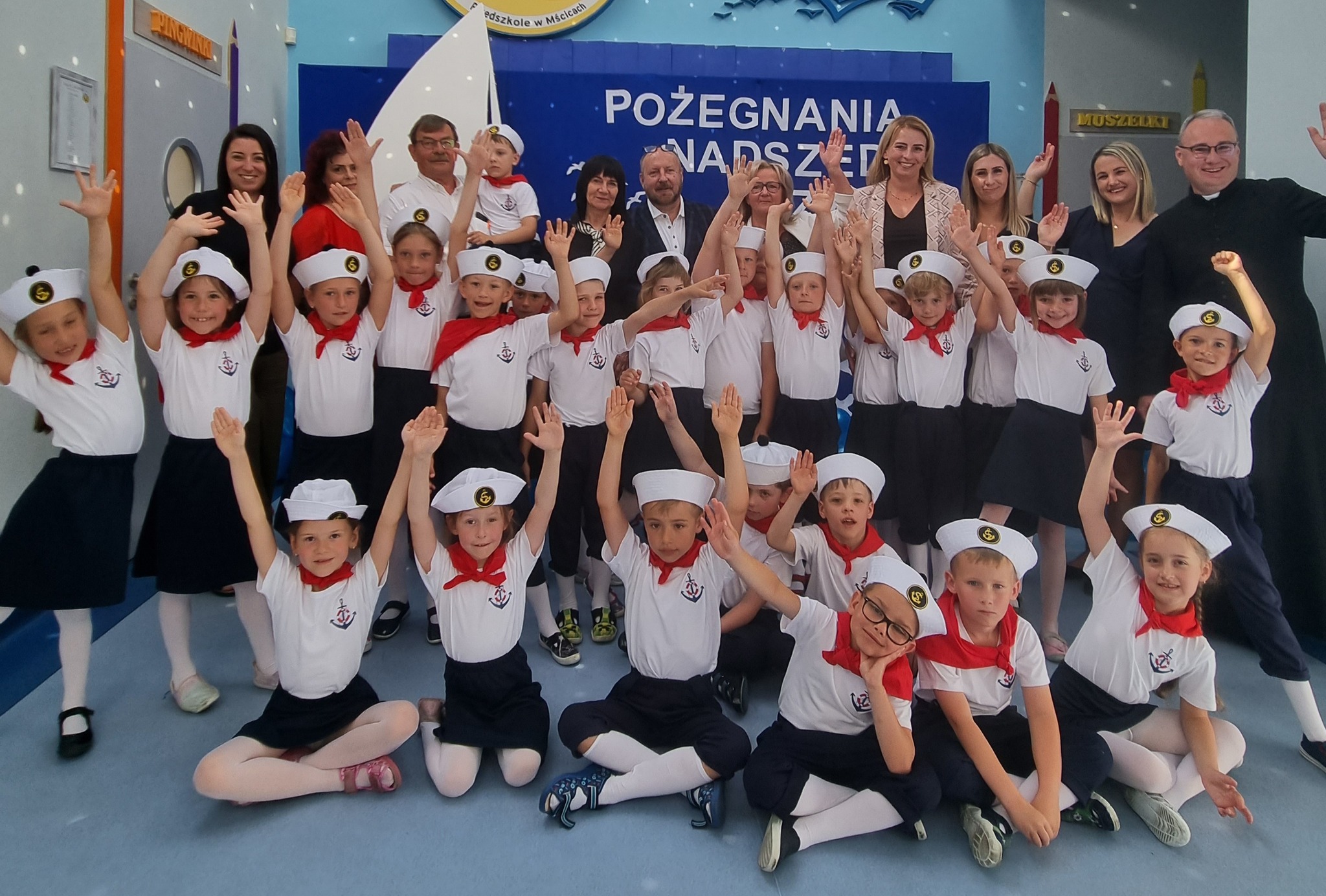 W czercu odbyło się bardzo uroczyste pozegnanie dzieci, które zakończyły swoją edukację przedszkolną i od września będą uczyły się już w pierwszej klasie szkoły podstawowej. Był to bardzo wzruszający moment dla dzieci z grupy "Marynarze" i dziei z grupy "Muszelki" oraz dla ich nauczycielek, pani dyrektor, rodziców. Dzieci zakończyły swój pierwszy etap edukacji i wkrótce wkroczą w życie szkolne. Pragniemy by pamiętały, że stając się uczniami, nie przestaną być dziećmi. W ich dalszej edukacji nadal towarzyszyć powinny: zabawa, uśmiech, zadowolenie nawet z małych sukcesów. To, czego nauczyły się w przedszkolu to pierwszy bagaż doświadczeń na całe życie: pierwsza książka, pierwsze zabawy z rówieśnikami, pierwsza ocena waszej pracy. To niezatarte wspomnienia waszego dzieciństwa, ważne a może nawet najważniejsze. Powodznia kochane dzieci!