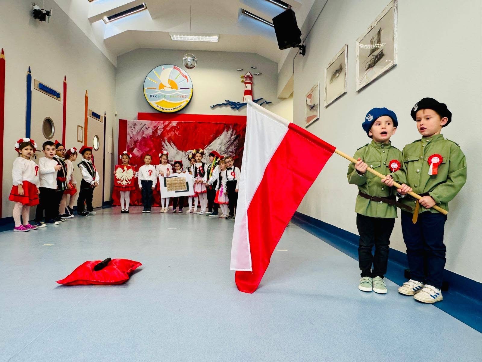 W naszym przedszkolu uroczyście obchodziliśmy Święto Niepodległości. Z tej okazji grupa „Rekinki” przygotowała piękną akademię patriotyczną, podczas której dzieci zaprezentowały wiersze, piosenki i tańce poświęcone Ojczyźnie. Przedszkolaki z dumą śpiewały hymn narodowy oraz opowiadały o symbolach Polski. Ich występ był pełen emocji, wzruszeń i radości, a mali artyści pokazali, że już od najmłodszych lat potrafią z szacunkiem i miłością mówić o swojej Ojczyźnie.