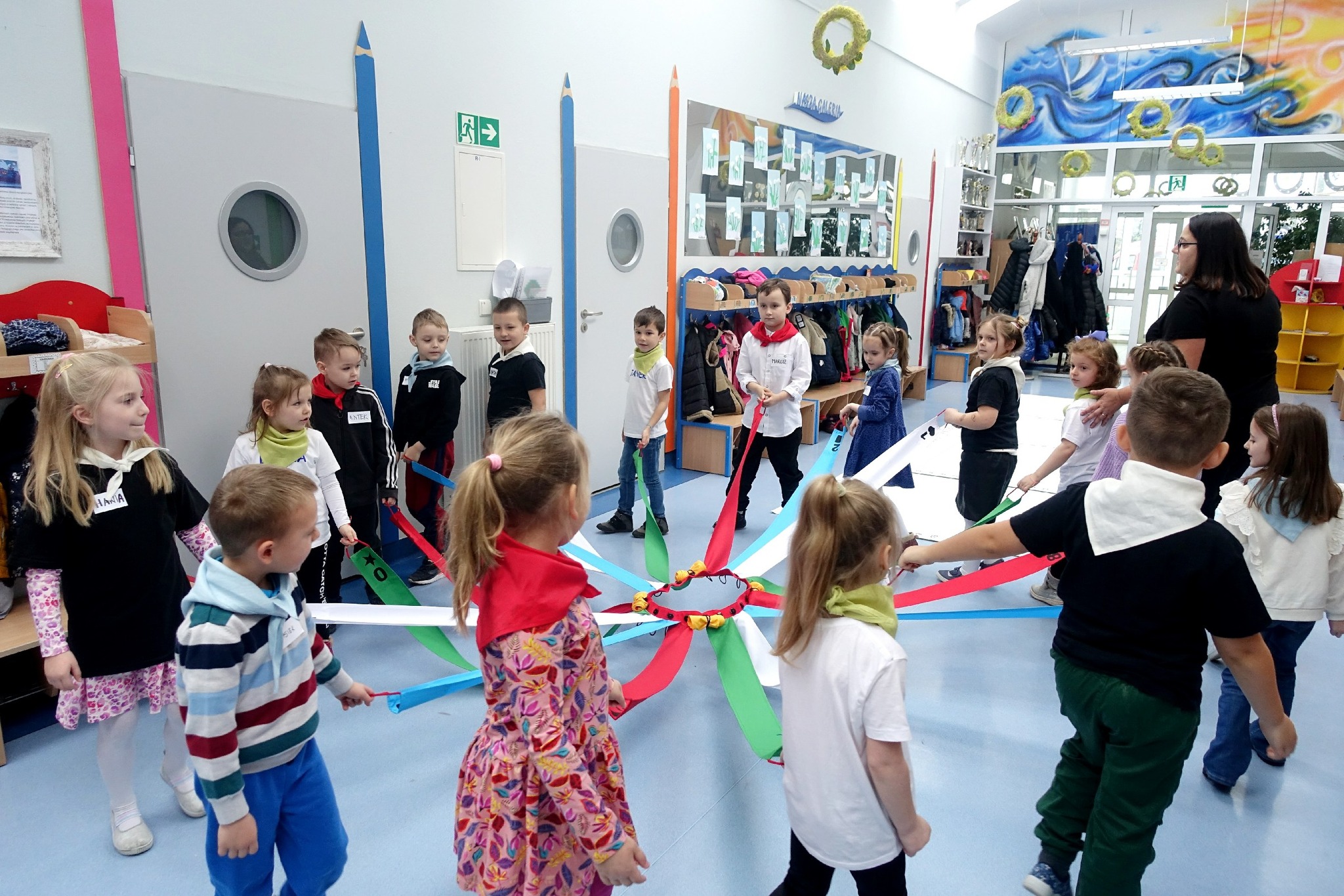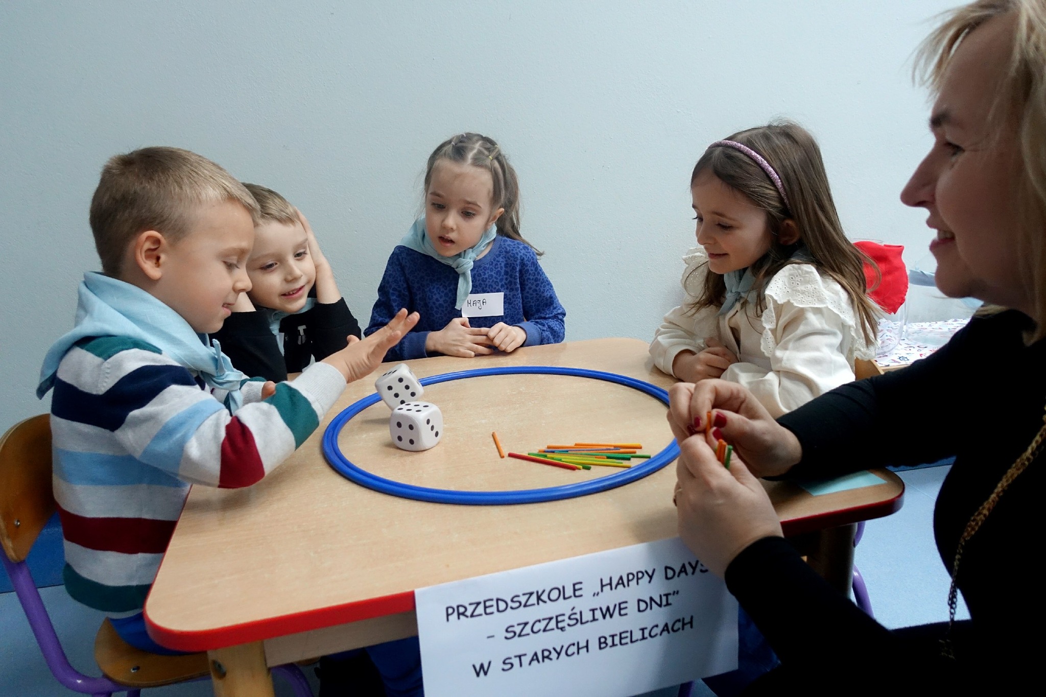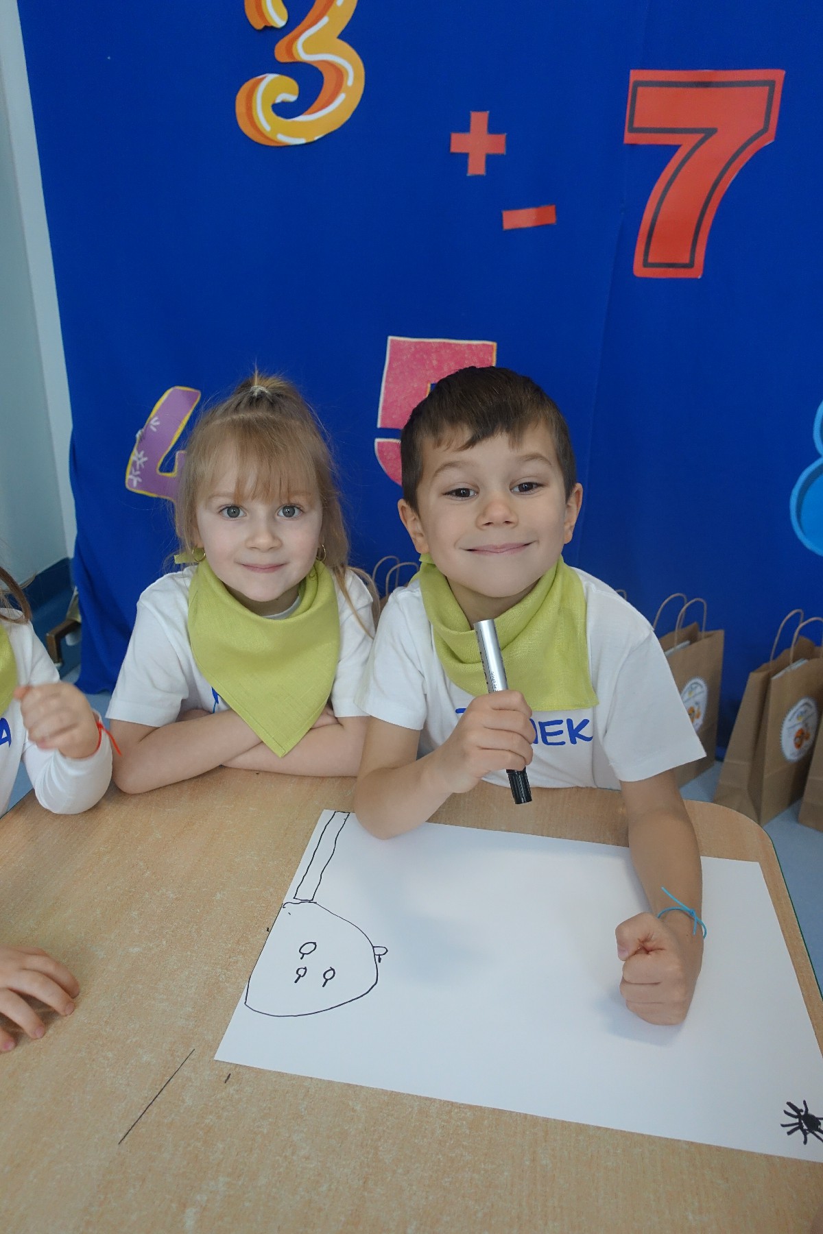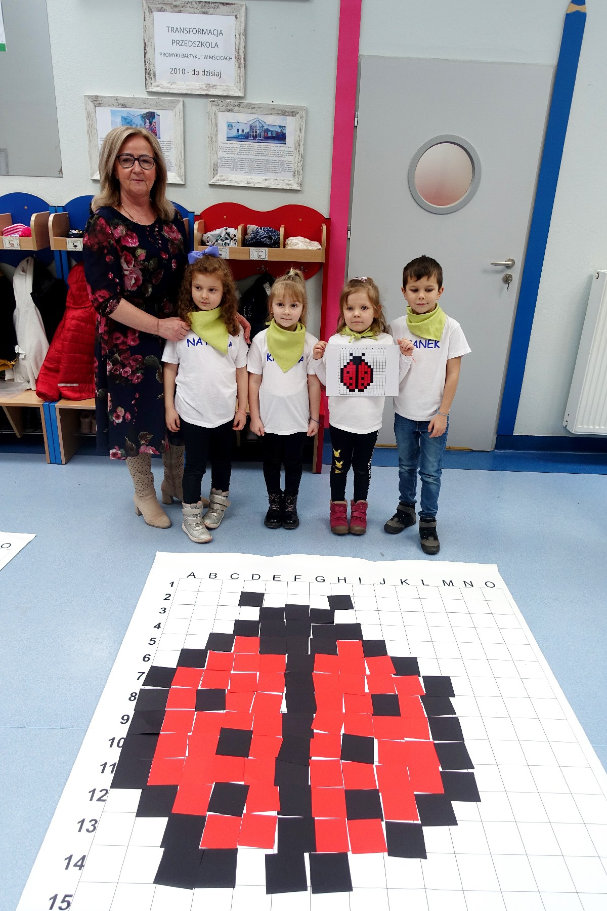 Tydzień matematyczny w naszym przedszkolu to przede wszystkim dużo zabawy i rożnorodnych działań podczas których dzieci rozwijają i utrwalają swoje umiejętności matematyczne. Zwieńczeniem całego tygodnia był II powiatowy konkurs matematyczny pt."Łamigłówki mądrej główki" dla 5-6-latków zorganizowany przez nauczycielki: Annę Bednarek, Annę Szostak i Paulinę Pichetę-Mackiewicz. W konkursie wzięły udział dzieci z Przedszkola w Będzinie, Przedszkola nr 8 im. Janusza Korczaka, Przedszkola "Happy Days- Szczęśliwe Dni" w Starych Bielicach oraz z naszego przedszkola. Dzieci wspaniale wykazały swoje umiejętności matematyczne w zakresie liczenia, układania rytmów, przeliczania, kodowania, orientacji kierunków i rozwiązywania zadań tekstowych. Naszymi ekspertami były osoby, które na co dzień mają do czynienia z matematyką: pani Anetta Tomala-Gajec -skarbnik gminy Będzino, pani Ewa Waszkiewicz wicedyrektor i nauczyciel informatyki i fizyki w SP im.Ludzi Morza w Mścicach, pani Teresa Frątczak - nauczycielka plastyki, matematyki, informatyki, pani Grażyna Budzik - dyrektor Przedszkola nr 8 w Koszalinie oraz nasza pani dyrektor Elżbieta Nożykowska. Wszyscy otrzymali max.liczbę punktów i zajęli I miejsca.