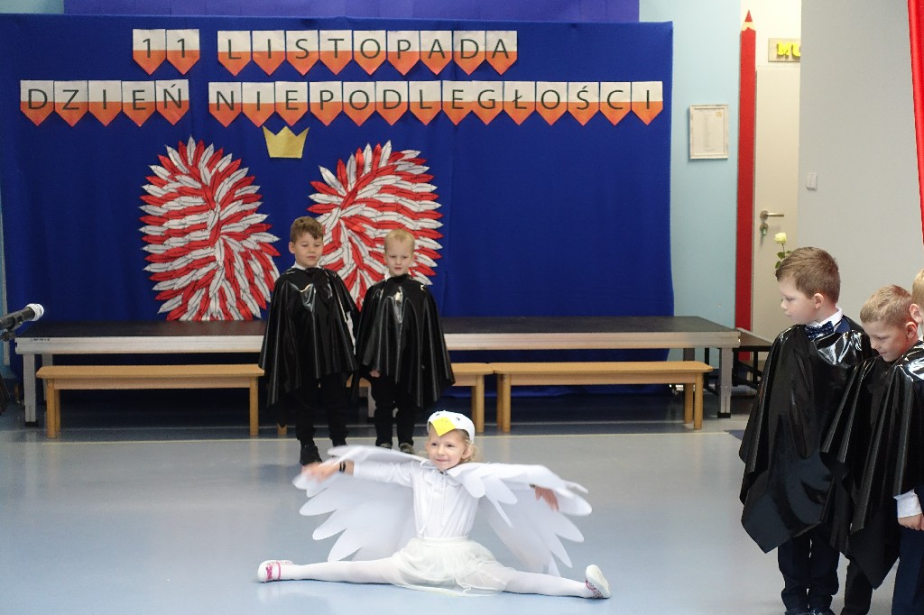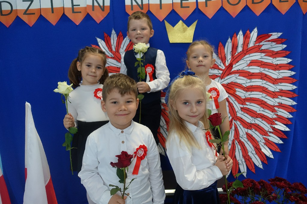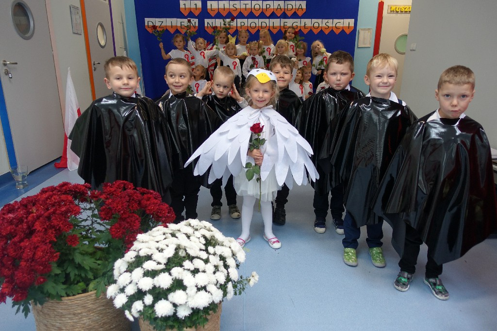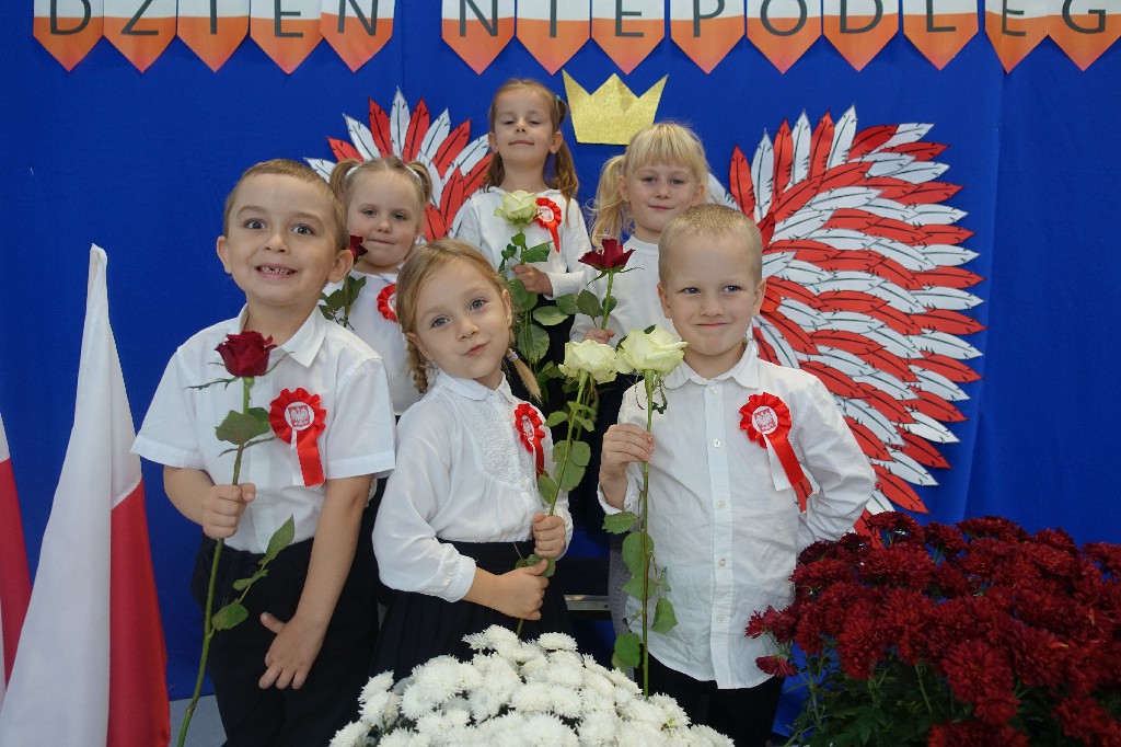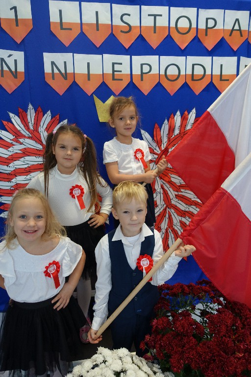 W naszym przedszkolu dn.09.11.2022r. naszym przedszkolu odbyła się piękna uroczystość z okazji Narodowego Święta Niepodległości, którą przygotowała grupa "Pingwinki" wraz z paniami: Iwoną Formela, Beatą Konopko oraz Agnieszką Pecyną. Występ był bardzo wzruszający dla wszystkich zgromadzonych pracowników i zaproszonych gości, bo "Polska to taka kraina, która się w sercu zaczyna. Potem jest w myślach blisko, w pięknej ziemi nad Wisłą. Jej ścieżkami chodzimy, budujemy , bronimy. Polska - Ojczyzna, kraina, która się w sercu zaczyna."