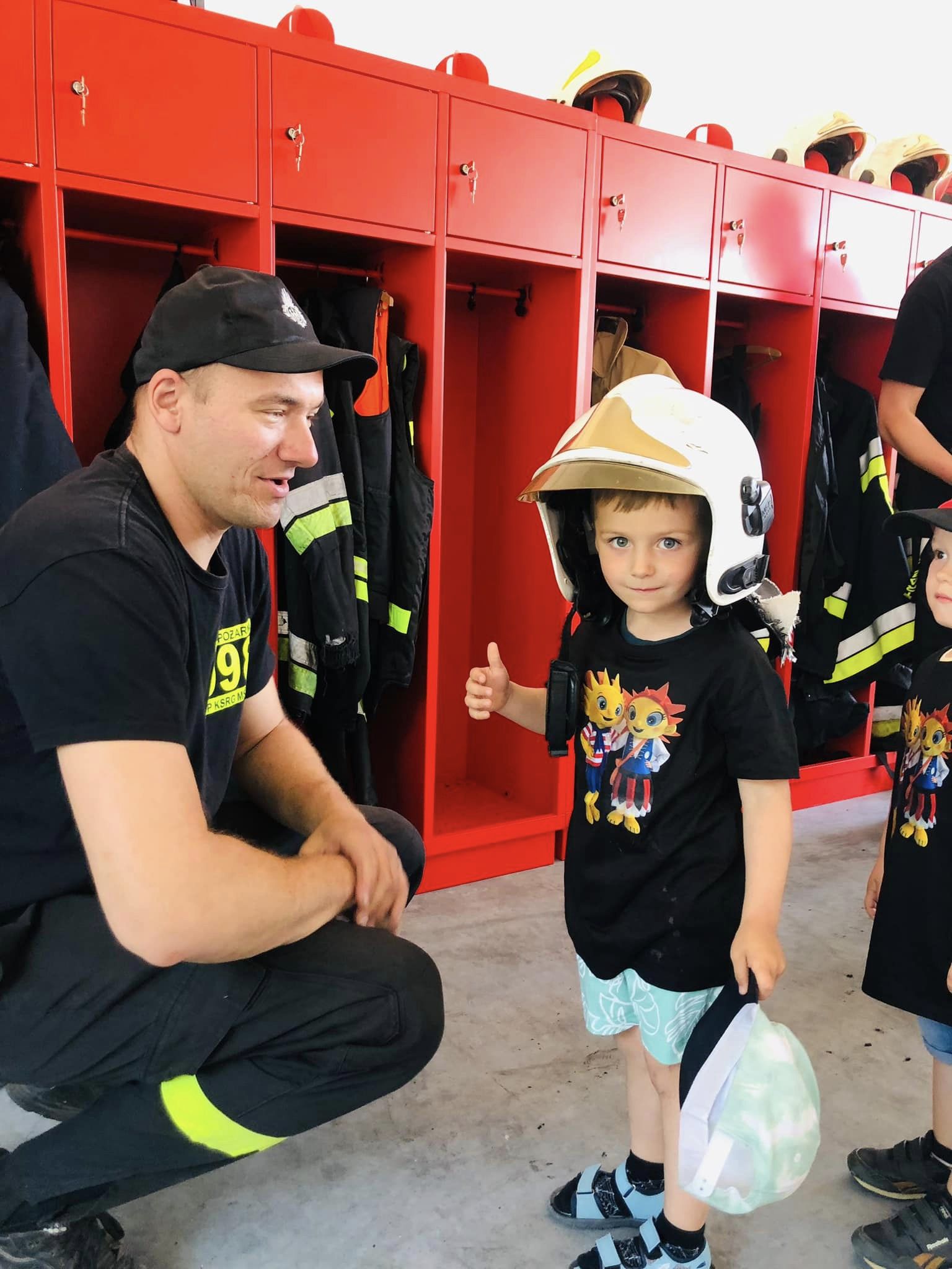 OSP Mścice w ostatnim czasie obchodziło swoje 75-lecie istnienia. Z tej okazji nasze przedszkolaki oraz ciocie odwiedziły naszych dzielnych strażaków w ich siedzibie. Zaprezentowały cześć artystyczną, którą zakończyły odśpiewaniem tradycyjnego „sto lat” dla wszystkich strażaków- jubilatów. Dziękujemy za pokazy strażackie, które sprawiły wielką radość naszym przedszkolakom. Na zakończenie strażacy przygotowali grilla dla wszystkich dzieci. Dziękujemy i życzymy dalszej, owocnej współpracy z naszym przedszkolem